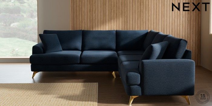 7.2.10 Parker Medium Corner Sofa - Universal Ripple Chenille Dark Blue High Metal - Brass | Made Click here to use our website with more accessibility support, for example screen readers