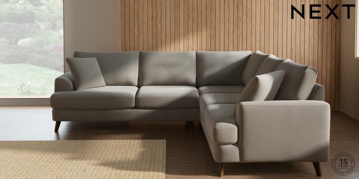7.2.10 Parker Medium Corner Sofa - Universal Ripple Chenille Light Natural Low Retro Tapered - Mid | Made Click here to use our website with more accessibility support, for example screen readers