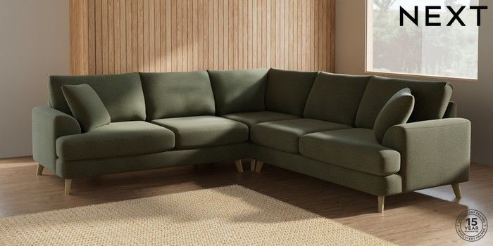 7.2.10 Parker Medium Corner Sofa - Universal Ripple Chenille Mid Moss Green Low Retro Tapered - Light | Made Click here to use our website with more accessibility support, for example screen readers