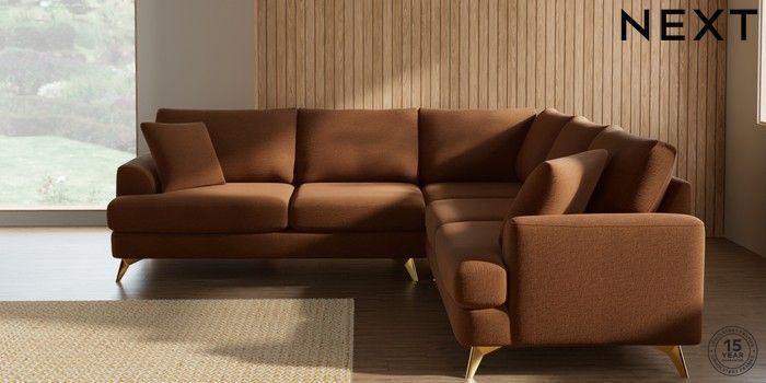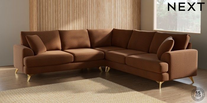 7.2.10 Parker Medium Corner Sofa - Universal Ripple Chenille Mid Rust Brown High Metal - Brass | Made Click here to use our website with more accessibility support, for example screen readers