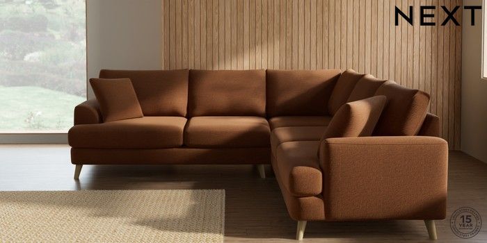 7.2.10 Parker Medium Corner Sofa - Universal Ripple Chenille Mid Rust Brown Low Retro Tapered - Light | Made Click here to use our website with more accessibility support, for example screen readers