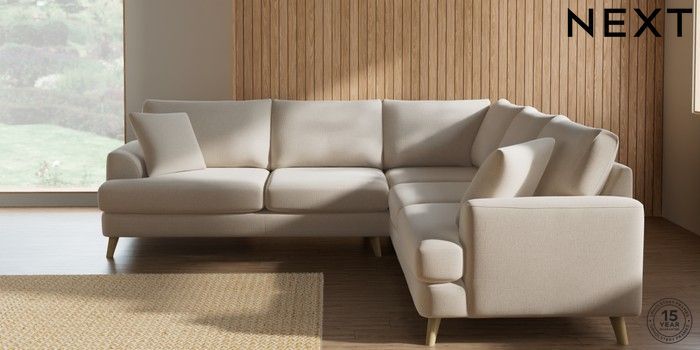7.2.10 Parker Medium Corner Sofa - Universal Studio Chenille Oyster Low Retro Tapered - Light | Made Click here to use our website with more accessibility support, for example screen readers