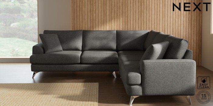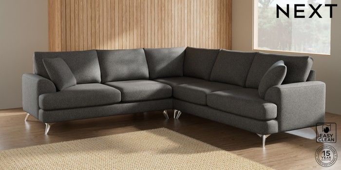 7.2.10 Parker Medium Corner Sofa - Universal Tweedy Blend Easy Clean Dark Grey High Metal - Chrome | Made Click here to use our website with more accessibility support, for example screen readers