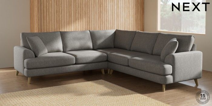 7.2.10 Parker Medium Corner Sofa - Universal Tweedy Chenille Mid Grey Low Retro Tapered - Light | Made Click here to use our website with more accessibility support, for example screen readers