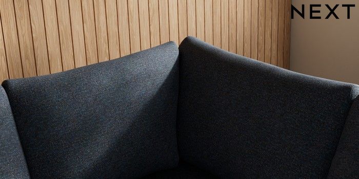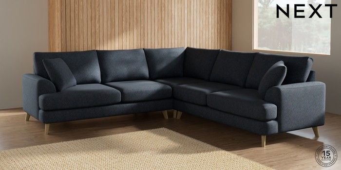 7.2.10 Parker Medium Corner Sofa - Universal Tweedy Chenille Navy Blue Low Retro Tapered - Light | Made Click here to use our website with more accessibility support, for example screen readers