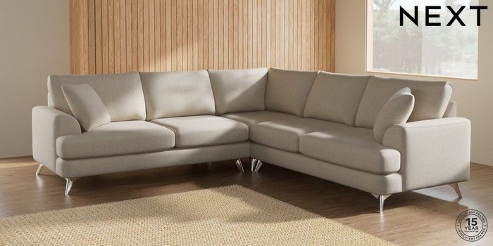 7.2.10 Parker Medium Corner Sofa - Universal Tweedy Chenille Oyster High Metal - Chrome | Made Click here to use our website with more accessibility support, for example screen readers
