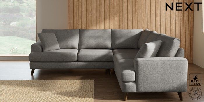 7.2.10 Parker Medium Corner Sofa - Universal Woven Chenille Easy Clean Light Grey Low Retro Tapered - Mid | Made Click here to use our website with more accessibility support, for example screen readers