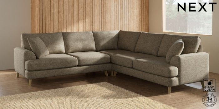 7.2.10 Parker Medium Corner Sofa - Universal Woven Chenille Easy Clean Mid Natural Low Retro Tapered - Light | Made Click here to use our website with more accessibility support, for example screen readers