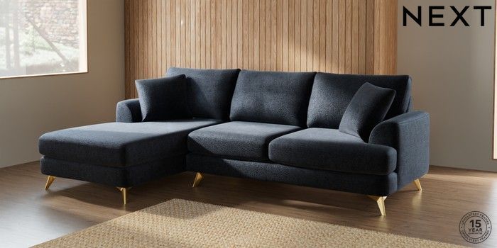 7.2.10 Parker Medium Sofa Chaise - Left Hand Boucle Chenille Dark Slate Blue High Metal - Brass | Made Click here to use our website with more accessibility support, for example screen readers