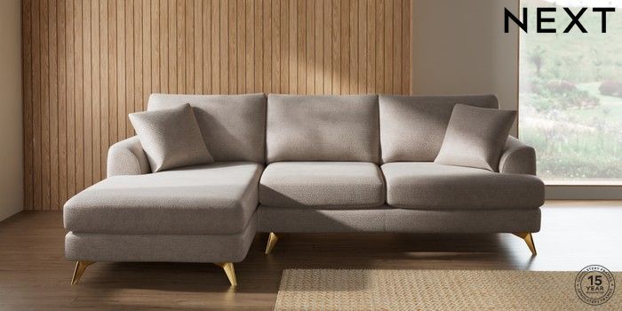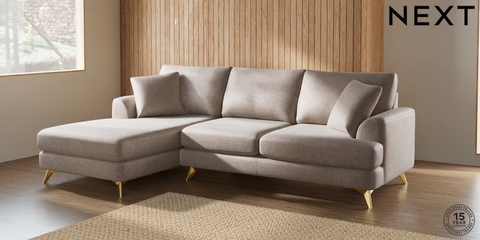 7.2.10 Parker Medium Sofa Chaise - Left Hand Boucle Chenille Light Natural High Metal - Brass | Made Click here to use our website with more accessibility support, for example screen readers