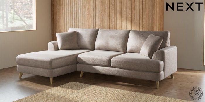 7.2.10 Parker Medium Sofa Chaise - Left Hand Boucle Chenille Light Natural Low Retro Tapered - Light | Made Click here to use our website with more accessibility support, for example screen readers