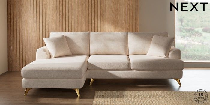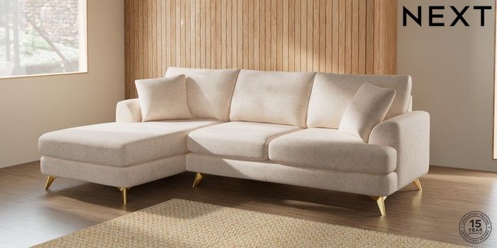 7.2.10 Parker Medium Sofa Chaise - Left Hand Boucle Chenille Oyster High Metal - Brass | Made Click here to use our website with more accessibility support, for example screen readers