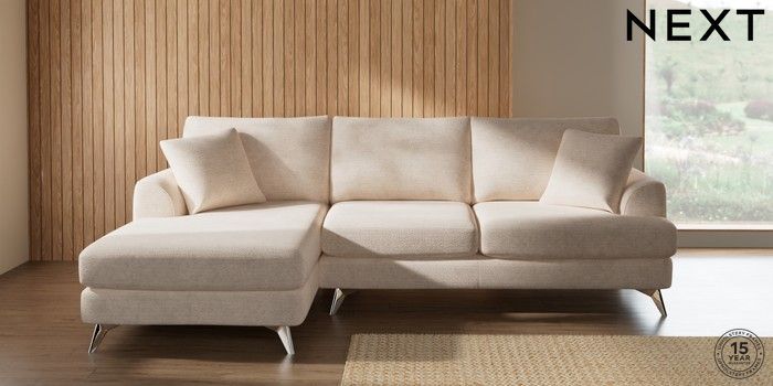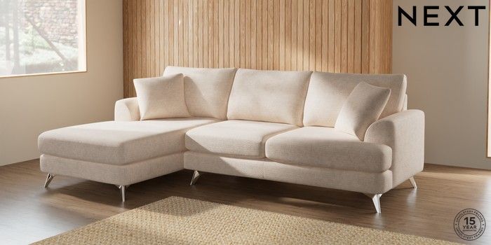 7.2.10 Parker Medium Sofa Chaise - Left Hand Boucle Chenille Oyster High Metal - Chrome | Made Click here to use our website with more accessibility support, for example screen readers
