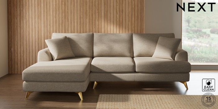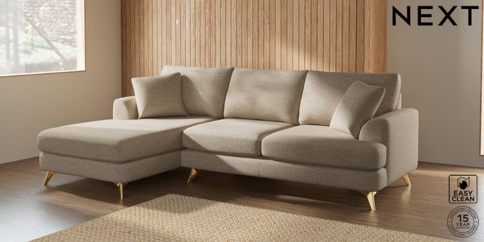7.2.10 Parker Medium Sofa Chaise - Left Hand Boucle Weave Easy Clean Dark Natural High Metal - Brass | Made Click here to use our website with more accessibility support, for example screen readers