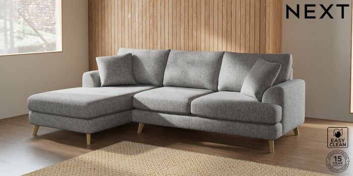 7.2.10 Parker Medium Sofa Chaise - Left Hand Chunky Boucle Easy Clean Light Grey Low Retro Tapered - Light | Made Click here to use our website with more accessibility support, for example screen readers