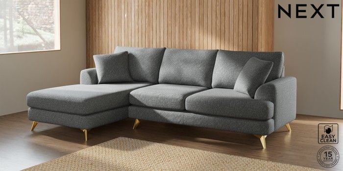 7.2.10 Parker Medium Sofa Chaise - Left Hand Chunky Boucle Easy Clean Mid Grey High Metal - Brass | Made Click here to use our website with more accessibility support, for example screen readers