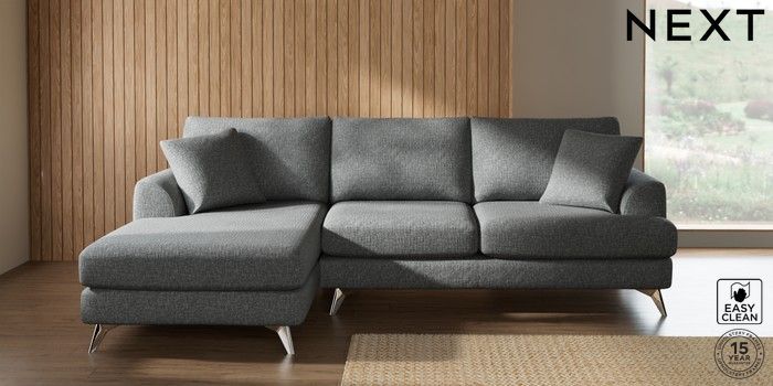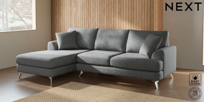 7.2.10 Parker Medium Sofa Chaise - Left Hand Chunky Boucle Easy Clean Mid Grey High Metal - Chrome | Made Click here to use our website with more accessibility support, for example screen readers