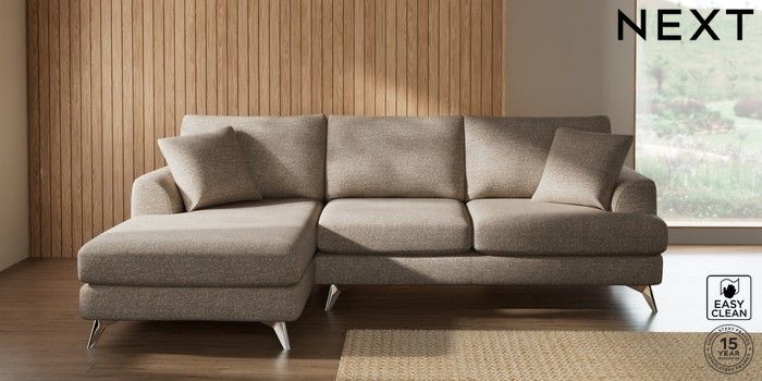 7.2.10 Parker Medium Sofa Chaise - Left Hand Chunky Boucle Easy Clean Mid Natural High Metal - Chrome | Made Click here to use our website with more accessibility support, for example screen readers