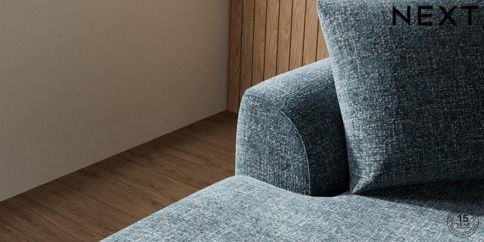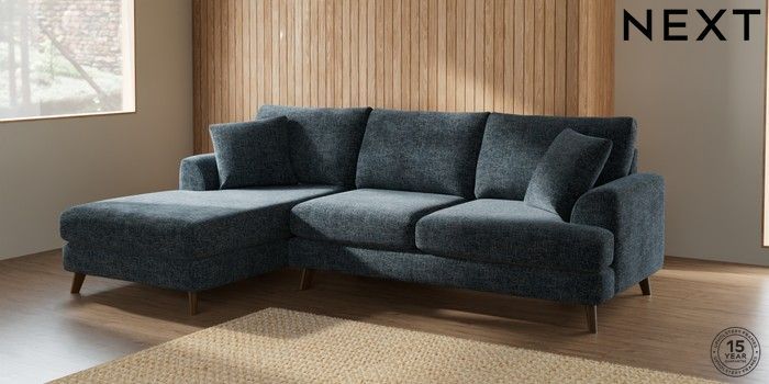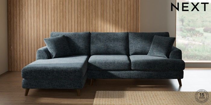 7.2.10 Parker Medium Sofa Chaise - Left Hand Chunky Chenille Dark Navy Blue Low Retro Tapered - Mid | Made Click here to use our website with more accessibility support, for example screen readers