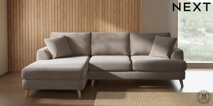 7.2.10 Parker Medium Sofa Chaise - Left Hand Chunky Chenille Light Dove Low Retro Tapered - Light | Made Click here to use our website with more accessibility support, for example screen readers