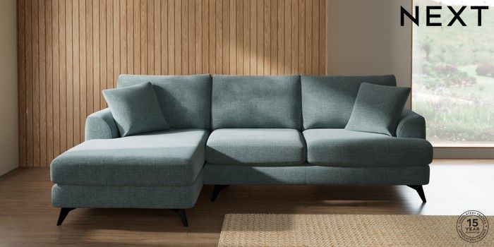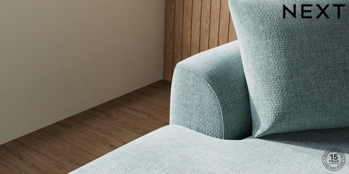 7.2.10 Parker Medium Sofa Chaise - Left Hand Chunky Chenille Light Teal Green High Metal - Black | Made Click here to use our website with more accessibility support, for example screen readers