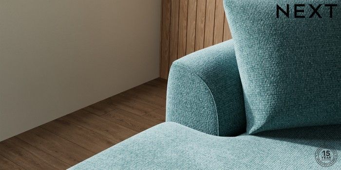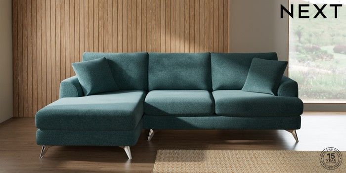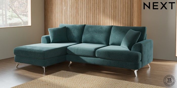 7.2.10 Parker Medium Sofa Chaise - Left Hand Chunky Chenille Mid Teal Green High Metal - Chrome | Made Click here to use our website with more accessibility support, for example screen readers