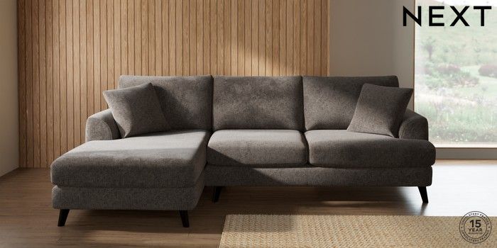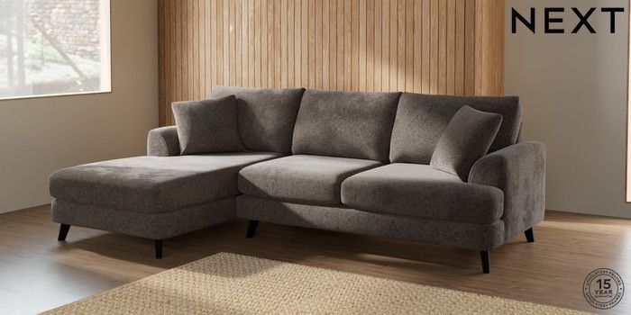 7.2.10 Parker Medium Sofa Chaise - Left Hand Chunky Chenille Mink Brown Low Retro Tapered - Dark | Made Click here to use our website with more accessibility support, for example screen readers