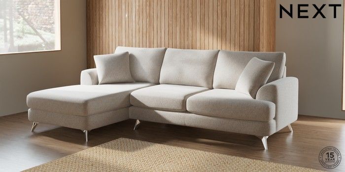 7.2.10 Parker Medium Sofa Chaise - Left Hand Chunky Marl Oyster High Metal - Chrome | Made Click here to use our website with more accessibility support, for example screen readers