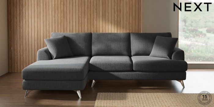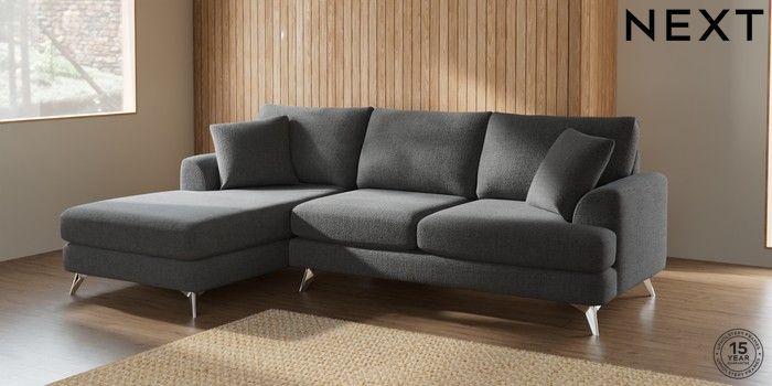 7.2.10 Parker Medium Sofa Chaise - Left Hand Chunky Texture Dark Grey High Metal - Chrome | Made Click here to use our website with more accessibility support, for example screen readers