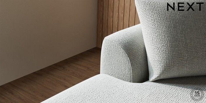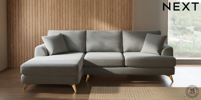 7.2.10 Parker Medium Sofa Chaise - Left Hand Chunky Texture Dove High Metal - Brass | Made Click here to use our website with more accessibility support, for example screen readers