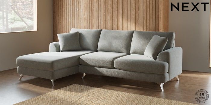 7.2.10 Parker Medium Sofa Chaise - Left Hand Chunky Texture Dove High Metal - Chrome | Made Click here to use our website with more accessibility support, for example screen readers