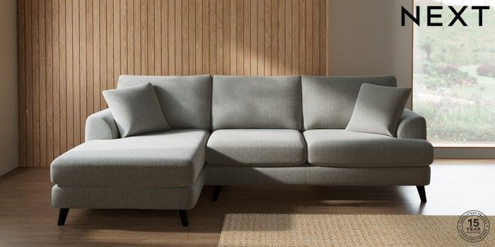 7.2.10 Parker Medium Sofa Chaise - Left Hand Chunky Texture Dove Low Retro Tapered - Dark | Made Click here to use our website with more accessibility support, for example screen readers
