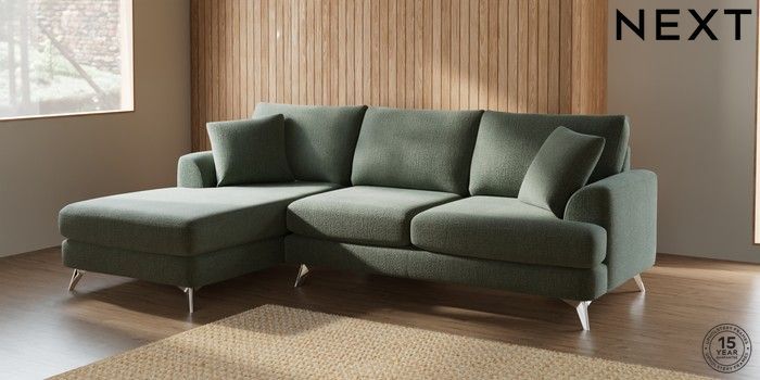 7.2.10 Parker Medium Sofa Chaise - Left Hand Chunky Texture Mid Forest Green High Metal - Chrome | Made Click here to use our website with more accessibility support, for example screen readers