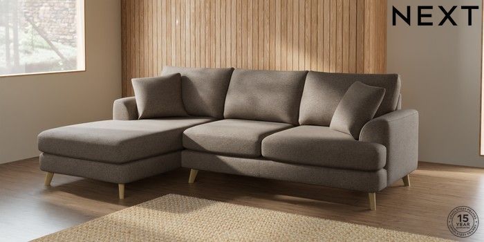 7.2.10 Parker Medium Sofa Chaise - Left Hand Chunky Weave Dark Natural Low Retro Tapered - Light | Made Click here to use our website with more accessibility support, for example screen readers