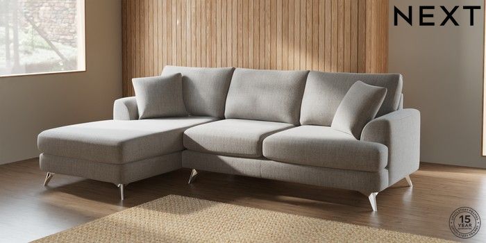 7.2.10 Parker Medium Sofa Chaise - Left Hand Chunky Weave Dove Grey High Metal - Chrome | Made Click here to use our website with more accessibility support, for example screen readers