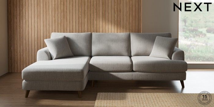 7.2.10 Parker Medium Sofa Chaise - Left Hand Chunky Weave Dove Grey Low Retro Tapered - Mid | Made Click here to use our website with more accessibility support, for example screen readers