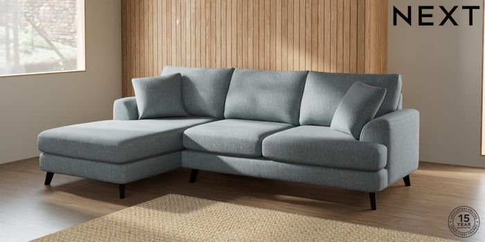7.2.10 Parker Medium Sofa Chaise - Left Hand Chunky Weave Mid Blue Low Retro Tapered - Dark | Made Click here to use our website with more accessibility support, for example screen readers