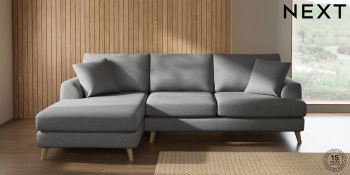 7.2.10 Parker Medium Sofa Chaise - Left Hand Chunky Weave Mid Grey Low Retro Tapered - Light | Made Click here to use our website with more accessibility support, for example screen readers