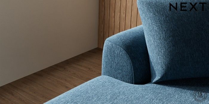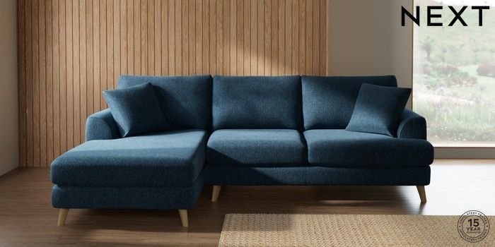 7.2.10 Parker Medium Sofa Chaise - Left Hand Cotswold Chenille Dark Blue Low Retro Tapered - Light | Made Click here to use our website with more accessibility support, for example screen readers
