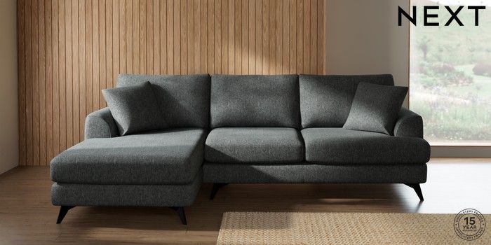 7.2.10 Parker Medium Sofa Chaise - Left Hand Cotswold Chenille Dark Grey High Metal - Black | Made Click here to use our website with more accessibility support, for example screen readers
