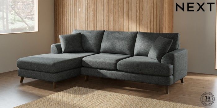 7.2.10 Parker Medium Sofa Chaise - Left Hand Cotswold Chenille Dark Grey Low Retro Tapered - Mid | Made Click here to use our website with more accessibility support, for example screen readers