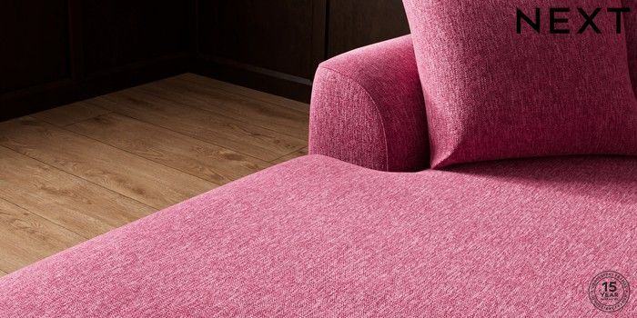 7.2.10 Parker Medium Sofa Chaise - Left Hand Cotswold Chenille Dark Raspberry Pink High Metal - Brass | Made Click here to use our website with more accessibility support, for example screen readers