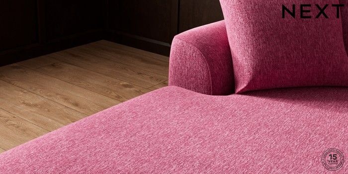 7.2.10 Parker Medium Sofa Chaise - Left Hand Cotswold Chenille Dark Raspberry Pink Low Retro Tapered - Mid | Made Click here to use our website with more accessibility support, for example screen readers