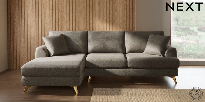 7.2.10 Parker Medium Sofa Chaise - Left Hand Cotswold Chenille Mid Mink Brown High Metal - Brass | Made Click here to use our website with more accessibility support, for example screen readers