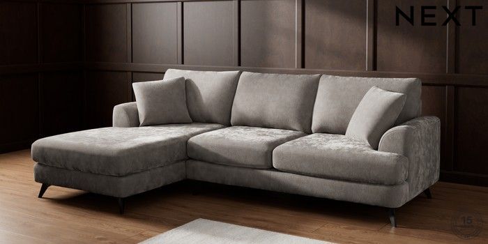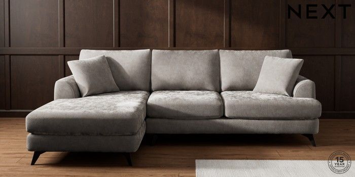 7.2.10 Parker Medium Sofa Chaise - Left Hand Distressed Velour French Grey High Metal - Black | Made Click here to use our website with more accessibility support, for example screen readers