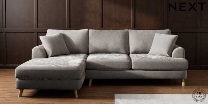 7.2.10 Parker Medium Sofa Chaise - Left Hand Distressed Velour French Grey Low Retro Tapered - Light | Made Click here to use our website with more accessibility support, for example screen readers
