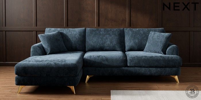 7.2.10 Parker Medium Sofa Chaise - Left Hand Distressed Velour Midnight Blue High Metal - Brass | Made Click here to use our website with more accessibility support, for example screen readers