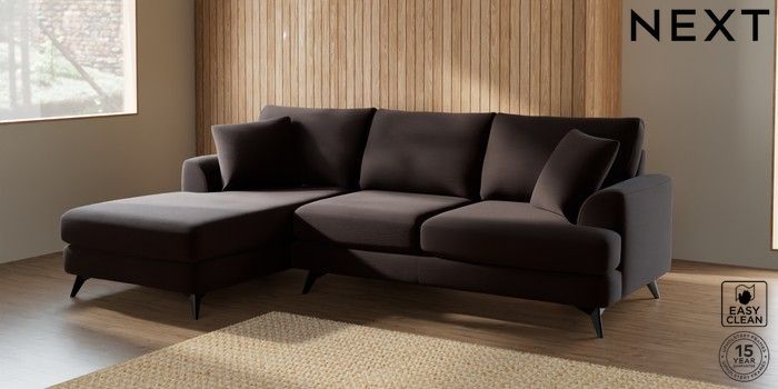 7.2.10 Parker Medium Sofa Chaise - Left Hand Fine Chenille Easy Clean Chocolate Brown High Metal - Black | Made Click here to use our website with more accessibility support, for example screen readers