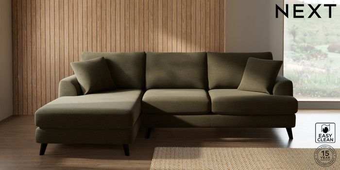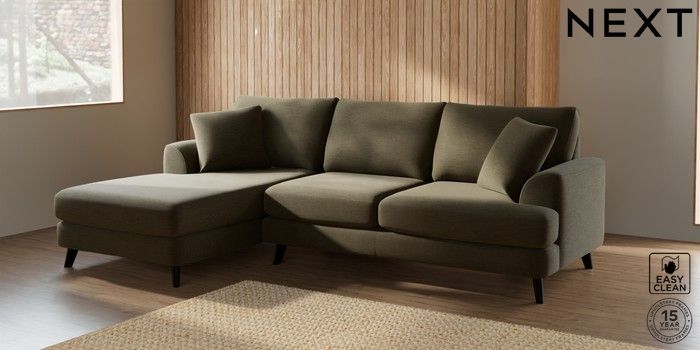 7.2.10 Parker Medium Sofa Chaise - Left Hand Fine Chenille Easy Clean Dark Moss Green Low Retro Tapered - Dark | Made Click here to use our website with more accessibility support, for example screen readers