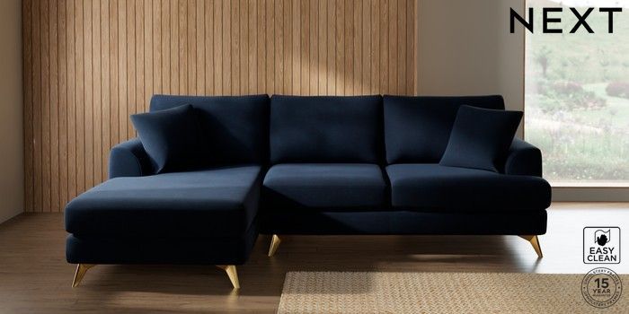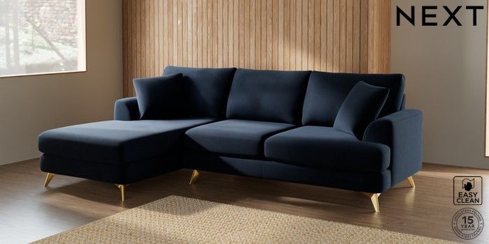 7.2.10 Parker Medium Sofa Chaise - Left Hand Fine Chenille Easy Clean Dark Navy Blue High Metal - Brass | Made Click here to use our website with more accessibility support, for example screen readers